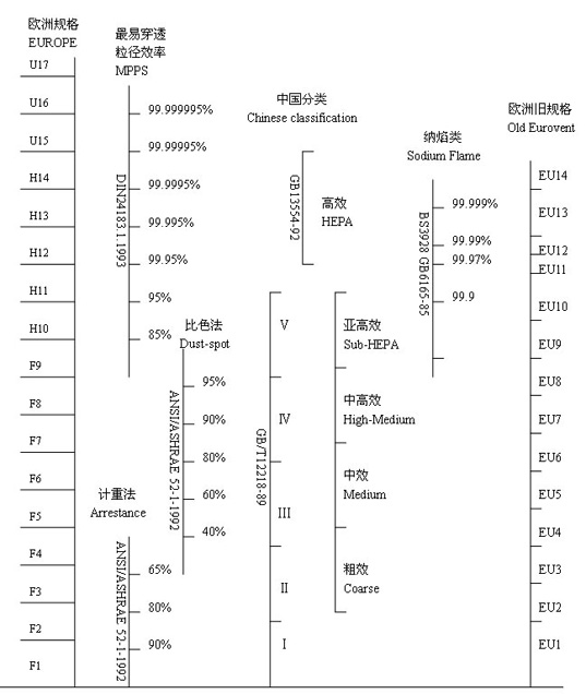空氣過(guò)濾效率分類對照表